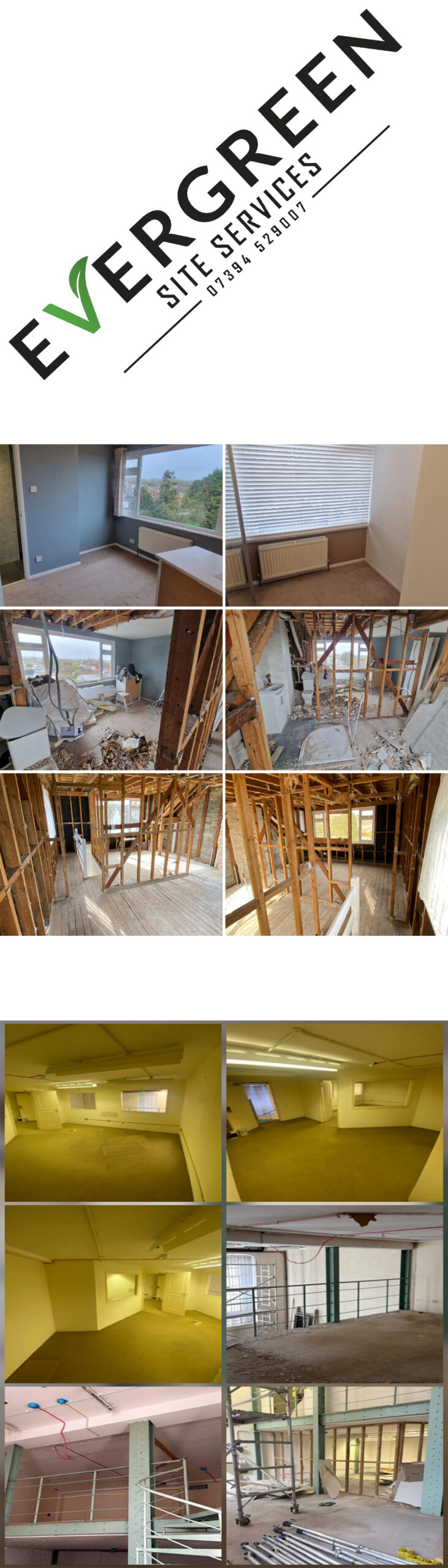 Evergreen Site Services specialises in safe, efficient, and environmentally responsible strip out work, preparing buildings for refurbishment, renovation, or redevelopment. Together, our two companies deliver a complete solution from site clearance and dismantling to waste collection and sustainable disposal.